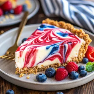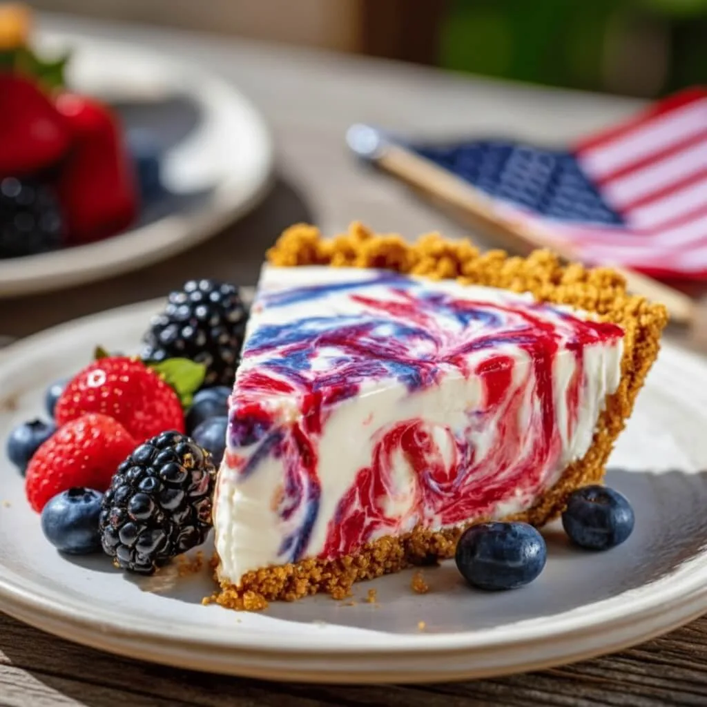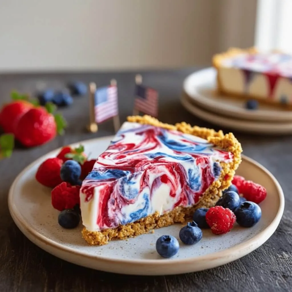 This festive, no-bake masterpiece features a silky, cloud-like filling dotted with vibrant red and blue berry swirls, all nestled inside a buttery, crunchy graham cracker crust. Whether you’re heading to a neighborhood potluck or hosting a backyard picnic under the fireworks, this colorful pie is guaranteed to wow your friends and family.